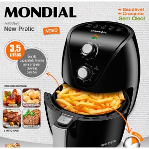 FRITADEIRA ELÉTRICA SEM ÓLEO – AIR FRYER MONDIAL NEW PRATIC 3,5L PRETA – 10X